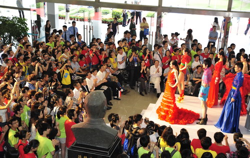5月13日下午,第七屆中國(深圳)國際文化產業博覽交易會深圳大學分會場開幕式于深圳大學科技樓拉開序幕。本屆分會場以“創意引擎,荔園先行”為主題,從13日至18日展示校園文化創意饕餮大餐。國家文化部中外文化交流中心主任呂軍,廣東省貿促會副會長白明韶,廣東省教育廳學位辦主任楊軍,深圳市政協副主席陳思平,南山區委副書記、組織部部長胡錦,我校領導江潭瑜、章必功、邢苗、陶一桃、邢鋒、李永華和各學院、相關部室負責人和400多名學生代表出席開幕式。開幕式由李永華主持。