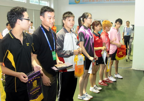 為促進廣東與港、澳、臺高校之間的交流和協作,擴大2011年深圳大運會的影響力,深圳市文體旅游局、深圳市教育局、深圳報業集團聯合舉辦的“粵港澳臺知名高校乒乓球邀請賽”于6月26日在我校舉行。深圳大學、暨南大學、華南理工大學、華南師范大學、深圳職業技術學院、香港理工大學、香港中文大學、澳門大學、澳門科技大學、東吳大學(臺灣)、臺北教育大學(臺灣)、臺南大學(臺灣)等12所知名高校組隊參加了本次比賽。