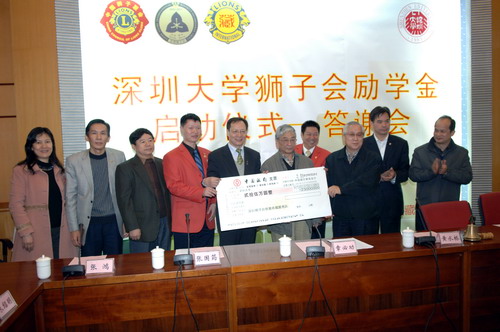 1月7日,“深圳大學獅子會勵學金啟動儀式――答謝會”在國際會議廳D廳舉行,這標志這深圳慈善收藏獅子會在我校設立的深圳大學獅子勵學金正式啟動。中國獅子聯合會副會長張國筠,深圳市殘聯副理事長朱紹明,深圳慈善收藏會創會會長張鴻,我校校長章必功和學生部負責人出席儀式。 會上,章必功首先對深圳慈善收藏獅子會在深圳大學設立獅子會勵學金表示感謝。他說,獅子會是一個富有感召力的國際性組織,各位...