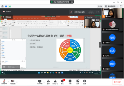 教育學(xué)部謝莎老師在《幼兒園優(yōu)秀教學(xué)活動(dòng)賞析》課堂中,采用“騰訊會(huì)議深大教育版+學(xué)習(xí)通”相結(jié)合的線上教學(xué)模式,組織隨堂小測驗(yàn)(學(xué)習(xí)通)及投票(騰訊會(huì)議),并用“騰訊會(huì)議深大教育版”分組討論方式增加互動(dòng)。