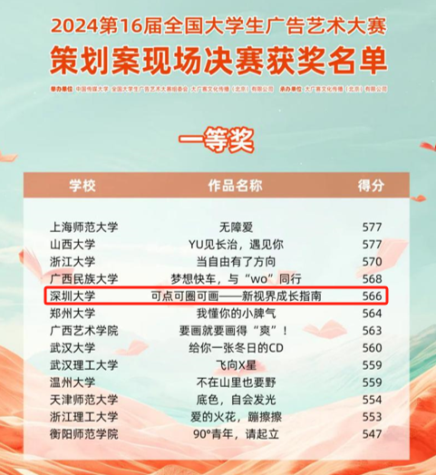 深圳大學傳播學院喜獲第16屆全國大學生廣告藝術大賽策劃案類一等獎