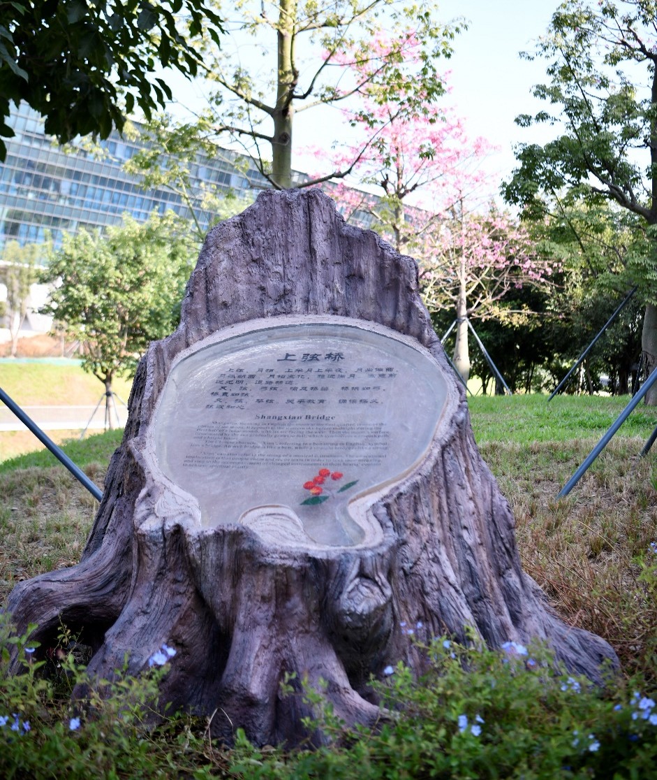 上弦橋:上弦,月相。上半月上半夜,月出偏西,月弧朝西。月相變化,趨近滿月。寓意前途光明,道路暢達。又,弦,弓弦。喻及橋梁:橋拱如弓,橋直如弦。又,弦,琴弦。關乎教育:誦讀探義,弦歌和心。