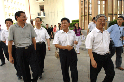 參觀過后,李意珍一行與深大教師和學生代表進行了座談,傾聽大家的心聲與建議。深大黨委書記江潭瑜一開始就報喜:第一喜是深大通過了教育部本科教學工作水平評估,初步評估結果為優秀;第二喜是專業碩士點增至4個,為在職人員攻讀碩士學位提供了廣闊平臺;第三喜是教育部授予深大為國家大學生文化素質教育基地,這是深大的第一個國家級教學科研基地;第四喜是深大科研水平不斷增強,科研經費增長較快,2004年為5000多萬元,今年爭取突破1億元;第五喜是隨著深大的知名度不斷提高,報考深大的人越來越多。深大校長章必功說,目前深大正以學術校園、人文校園、創新校園、和諧校園為抓手,努力把深大建設成為一所在國內外有較大影響的高水平、有特色、綜合性教育研究型大學。