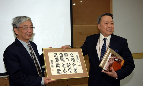 開館之前,校長章必功、副校長阮雙琛在辦公樓207會見了譚中先生一行,熱烈歡迎他們遠道而來共襄盛舉,并對他們多年來對深圳大學的關心與支持表示衷心感謝。