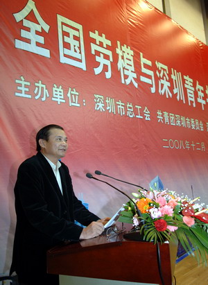 市委常委、市教育工委書記李意珍說,全國勞模們是新時代最可愛的人,是值得我們尊敬的人。在全國總工會的組織下,111名全國勞模來到深圳,這是對深圳全體勞動者的鼓舞和激勵。這次與勞模座談,對于深圳青年理解人生、感悟人生是一個好機會,非常有意義。他說,舉辦這項活動,正如一堂課、一首歌、一本書激勵深圳青年不斷前進。勞模們來自全國各條戰(zhàn)線、各個行業(yè),他們豐富的人生歷程和人生哲理具有不同尋常的教育意義,因此這是一堂非常有意義的人生教育課;勞模們身上展現(xiàn)出來的奮斗激情、奉獻精神和創(chuàng)造熱情,就是一首亢奮、動聽的歌;勞模用奉獻、奮斗、創(chuàng)造精神和高尚人格品質(zhì)凝結(jié)而成的榮譽,是一本人生教科書,值得每個深圳青年認真閱讀。他鼓勵廣大深圳青年要向全國勞模學習,以全國勞模為榜樣,愛崗敬業(yè)、開拓創(chuàng)新,進一步堅定信念,立志成才,爭當深入學習科學發(fā)展觀的排頭兵,爭當建設(shè)中國特色社會主義示范市的先鋒。