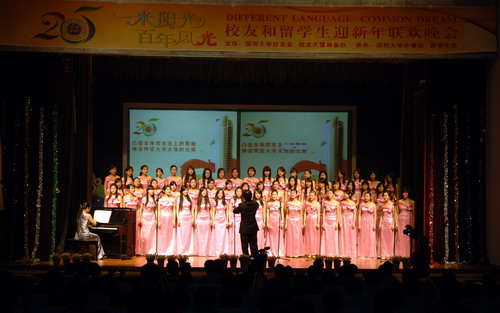 晚會在采桑子合唱團優美的歌聲中拉開序幕。章必功校長致辭。他說,今夜,我們載歌載舞迎接新年。這次晚會有三大創意:一是一臺以留學生表演為主的晚會;二是校友、留學生與在校本科生的一次聯歡;三,晚會“一米陽光,百年風光”傳達出來的意思是聚沙成塔、眾人拾柴火焰高,眾志成城,無堅不摧。最后,他向校友們、留學生致以最衷心的春天的祝福。