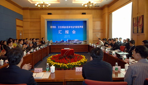 會前,專家組與我校教師在國際會議廳A廳舉行座談會,共同探討我校醫學院的建設問題。還在國際會議廳B廳聽取了醫學院教研室主要負責人的工作匯報。