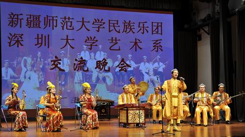 “新疆師范大學(xué)民族樂團(tuán)與深圳大學(xué)藝術(shù)交流晚會(huì)”于 11日晚在國際會(huì)議舉行,新疆師范大學(xué)民族樂團(tuán)為我校師生奉獻(xiàn)了一場豐盛的聽覺盛宴。