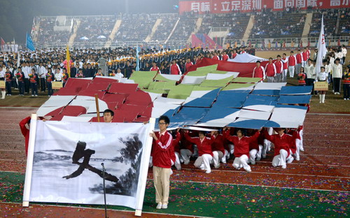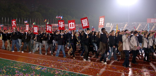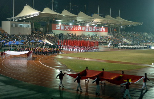 彩旗飄揚,樂曲高奏,在一片歡騰的氣氛中,深大學子的炙熱激情擊退來自遠方的寒流,12月7日晚上,深圳大學2009年運動會體育場隆重開幕。