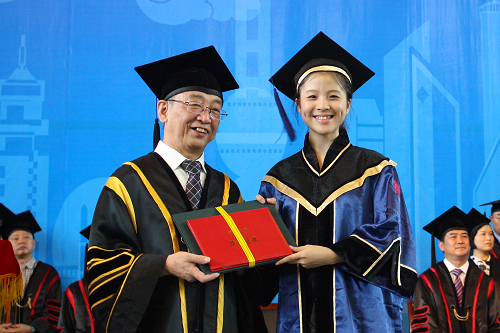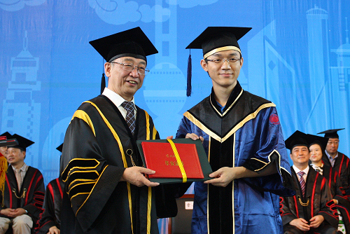 典禮暨授予儀式在雄壯的國歌聲中開始,學士學位獲得者逐一上臺,走到章必功校長面前接受學位授予并合影留念。