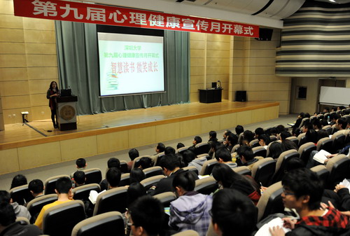 3月28日晚,我校第九屆心理健康宣傳月開幕式在學校科技樓1號報告廳舉行。校黨委副書記陶一桃教授,學生部和各學院主管學生工作的領導、輔導員及學生代表共350多人出席開幕式。陶一桃在開幕儀式后作了本屆心理健康宣傳月第一場講座:讀書與成長。