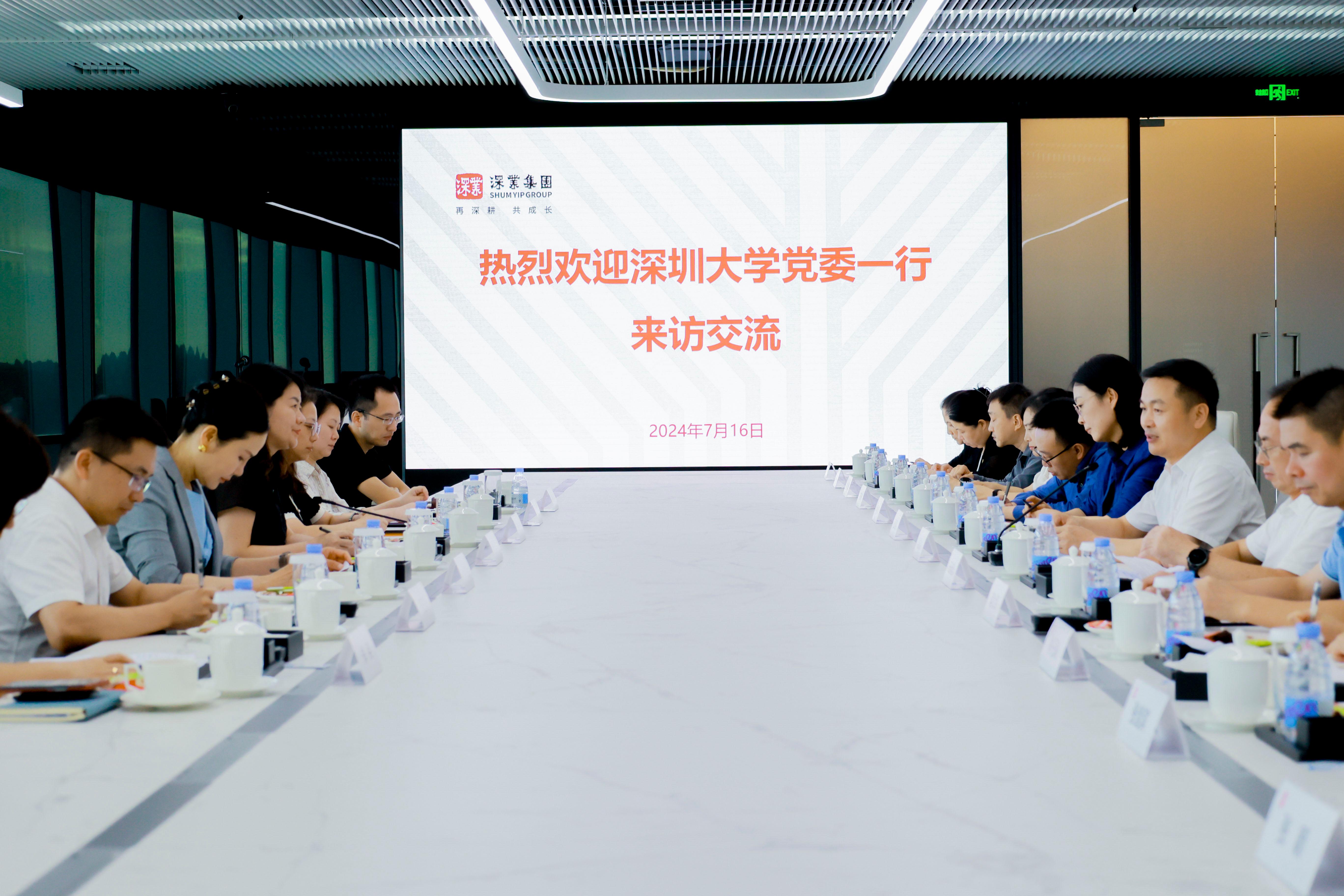 蔡潯表示,深業集團與深圳大學同時誕生于深圳,伴隨改革開放的春風共同成長,雙方合作淵源深厚,每年有許多深大畢業生進入深業集團工作。她表示,深業集團充分發揮黨建引領企業高質量發展的作用,加強政治建設,服務企業發展大局,將集團建設融入基層治理,融入建設粵港澳大灣區的國家戰略,自覺承擔起國企應有的社會責任。黨建工作重視共駐共建的示范作用,不僅建立起與轄區街道共建的黨群中心,更與喀什等地建立聯合黨委,擴大黨建引領的范圍,搭建政企聯動的橋梁。她希望以此次訪問為契機,進一步加強校企聯動,推動雙方更加深入廣泛的合作。