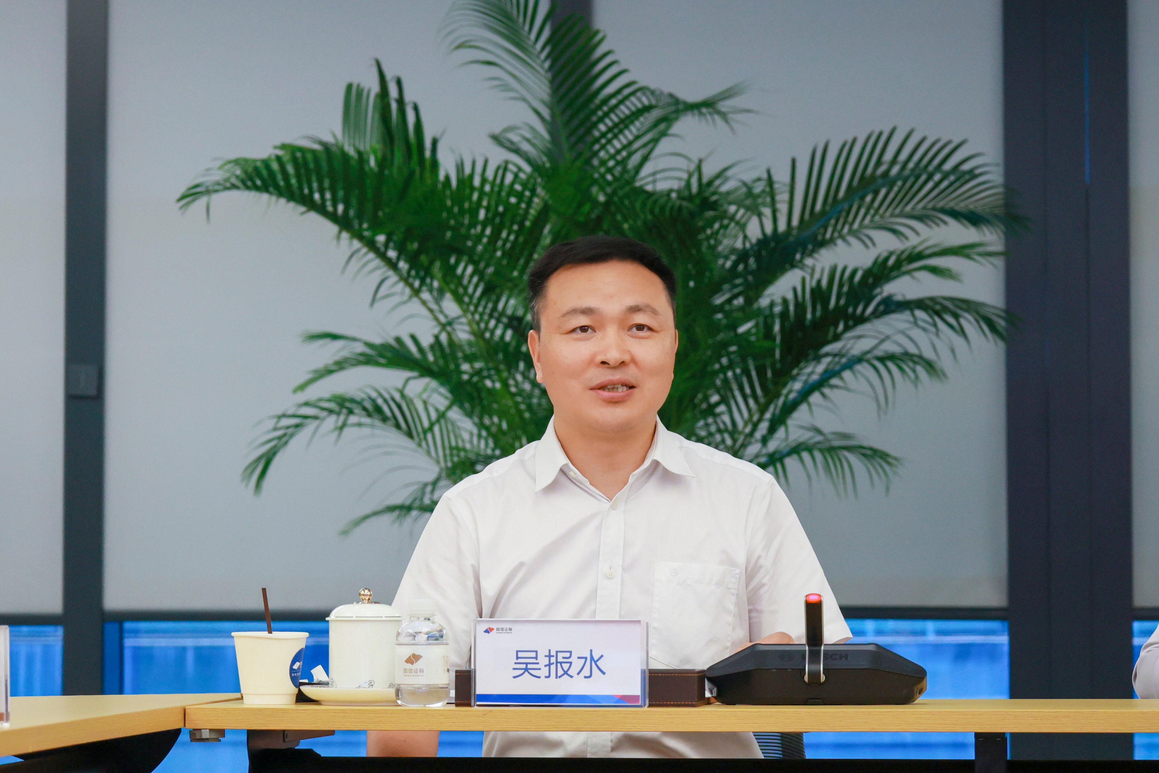 在座談交流會上,吳報水對國信證券黨委黨建工作予以高度評價。他表示,國信證券黨委的黨建工作特色鮮明,將黨建工作與業務工作、合規工作相融合,彰顯了高度的政治站位和用黨建引領金融業務發展的政治自覺,打造了一片黨建工作的“前沿陣地”,從分類指導黨建、“傳幫帶”等具體工作中體現了黨建和業務雙向促進的成效,黨建工作開展取得了實實在在的成果。吳報水表示,深圳大學要學習借鑒國信證券黨委黨建和引領保障企業高質量發展的經驗,切實促進學校發展更上新臺階,希望以此次交流為契機,深化校企雙方各方面的合作。