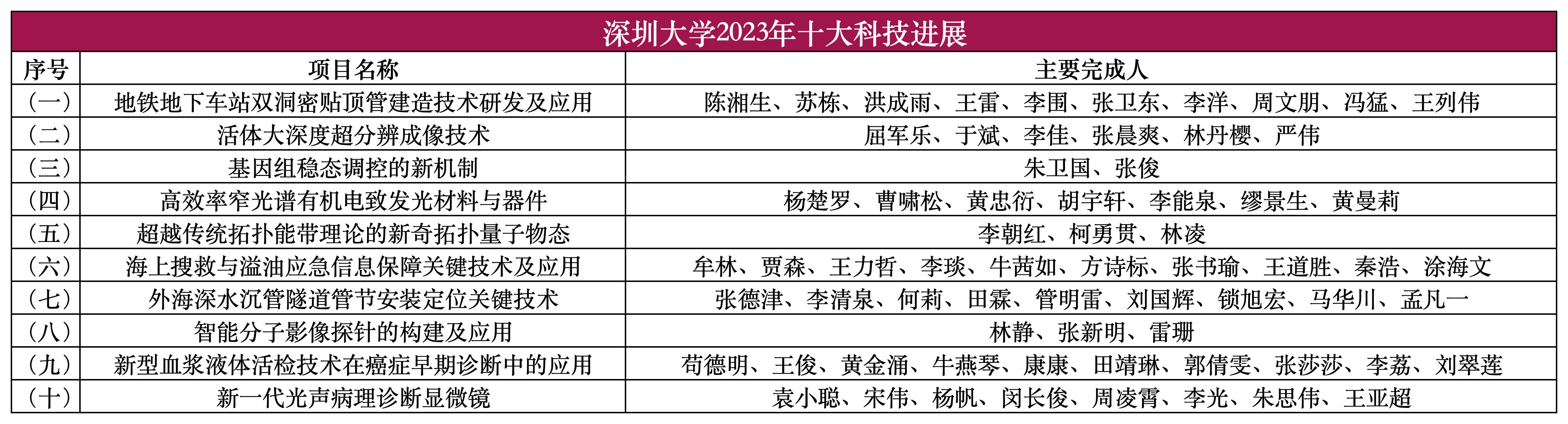 深圳大學2023年十大科技進展評選結(jié)果出爐