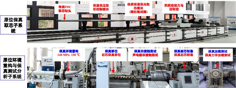 針對深部原位巖芯本真參數(shù)原位獲取(相當(dāng)于取地球“活體”樣本) 的技術(shù)空白,謝和平院士團(tuán)隊(duì)首創(chuàng)了原位自觸發(fā)保壓取芯技術(shù)構(gòu)想與“主動+被動”保溫相結(jié)合的保壓保溫取芯全新原理,原創(chuàng)性提出“保質(zhì)、保濕、保光”取芯與“隨鉆隨成膜”的顛覆性原理與技術(shù),攻克了深部原位隨鉆成膜技術(shù)難題,填補(bǔ)了深部原位保質(zhì)保濕保光取芯的技術(shù)空白。自主研制了全球首個1:1全尺寸深部原位五保取芯率定與模擬分析平臺,填補(bǔ)了不同深度原位環(huán)境物理力學(xué)參數(shù)模擬測試與率定的技術(shù)空白。