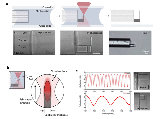 近日,深圳大學物理與光電工程學院王義平教授團隊在國際知名納米科技期刊《Nano Letters》(中科院一區,Nature Index期刊,影響因子10.8)上以期刊封面論文形式發表題為“An Optical Fiber-Based Nanomotion Sensor for Rapid Antibiotic and Antifungal Susceptibility Tests”的研究論文。該論文報道了一種新型基于光纖的超靈敏納米振動傳感器,通過在光纖端面利用飛秒激光雙光子聚合3D打印出的微懸臂梁,用于快速抗生素和抗菌藥物敏感性試驗,極大提升了測試速度,并實現了試驗裝置的小型化和簡單化。深圳大學廖常銳教授和瑞士洛桑理工學院周江濤博士為共同第一作者,深圳大學王義平教授、廖常銳教授和瑞士洛桑理工學院Sandor Kasas 教授和周江濤博士為共同通訊作者。