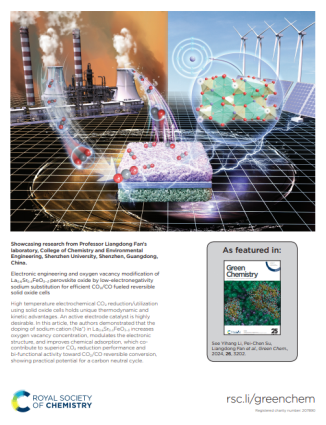 深圳大學化學與環境工程學院范梁棟課題組在可逆固體氧化物電池(CO2還原/CO氧化)研究方向取得研究進展,相關研究成果受邀在Green Chemistry期刊上發表高水平研究論文。