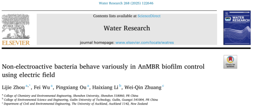 近日,深圳大學(xué)化學(xué)與環(huán)境工程學(xué)院周禮杰團隊在環(huán)境工程領(lǐng)域頂級期刊Water Research(Nature Index期刊;影響因子11.4;中科院JCR 1區(qū),TOP期刊)上發(fā)表題為“Non-electroactive bacteria behave variously in AnMBR biofilm control using electric field”研究論文。該團隊副教授周禮杰為論文第一作者及獨立通訊作者,深圳大學(xué)為第一作者單位及通訊單位。