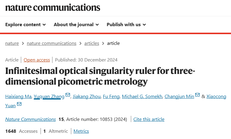 微納光電子學(xué)研究院袁小聰院士團(tuán)隊(duì)在《Nature Communications》上發(fā)表關(guān)于奇點(diǎn)光學(xué)尺三維皮米計(jì)量的研究成果
