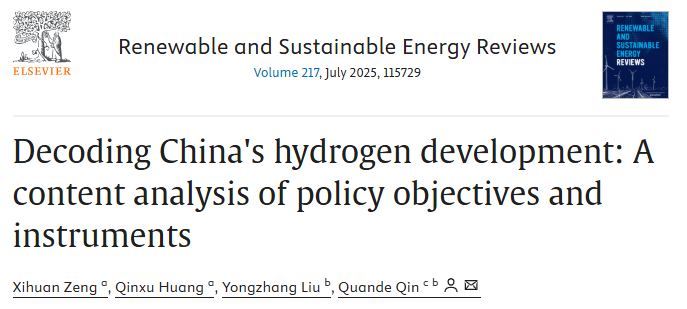 2025年5月4日,深圳大學政府管理學院副教授曾錫環(huán)在能源領域頂級期刊Renewable & Sustainable Energy Reviews (中科院一區(qū)Top,JCR一區(qū),IF=16.9)上發(fā)表題為“Decoding China's hydrogen development: A content analysis of policy objectives and instruments”的學術論文。曾錫環(huán)為論文第一作者,深圳大學為第一完成單位。